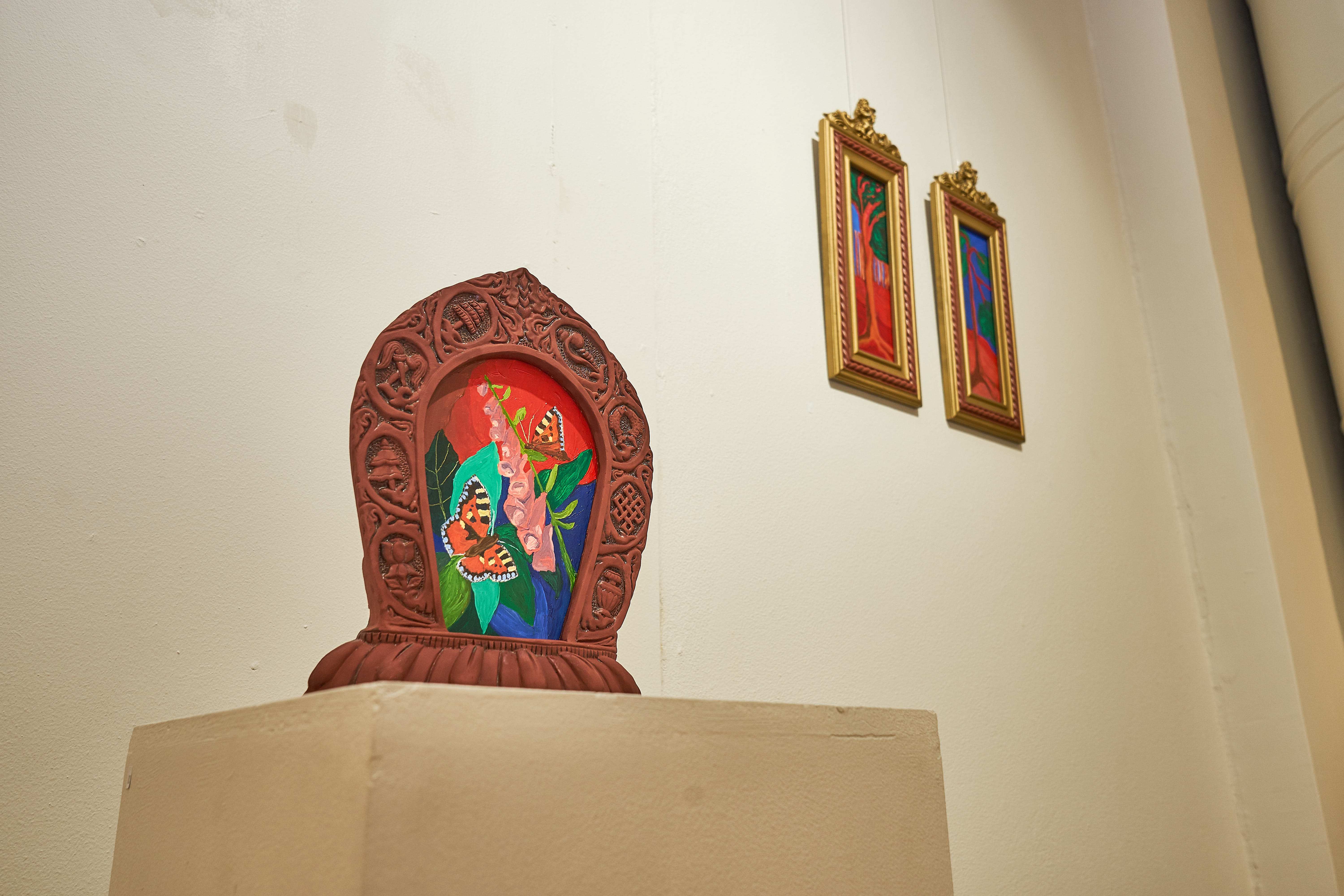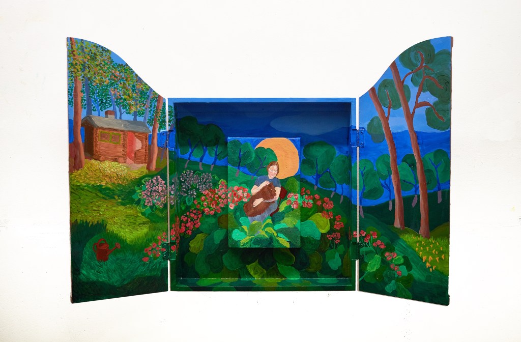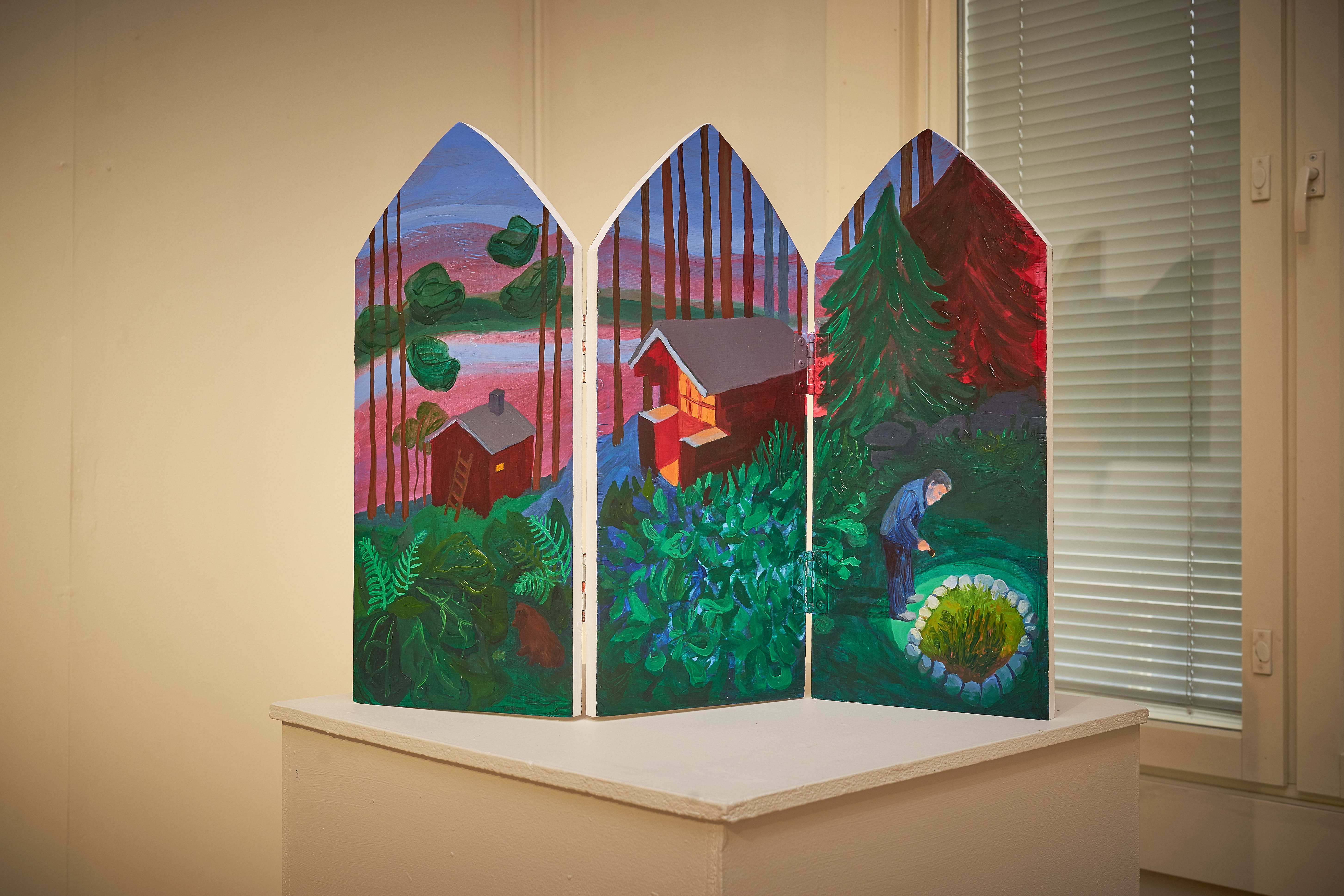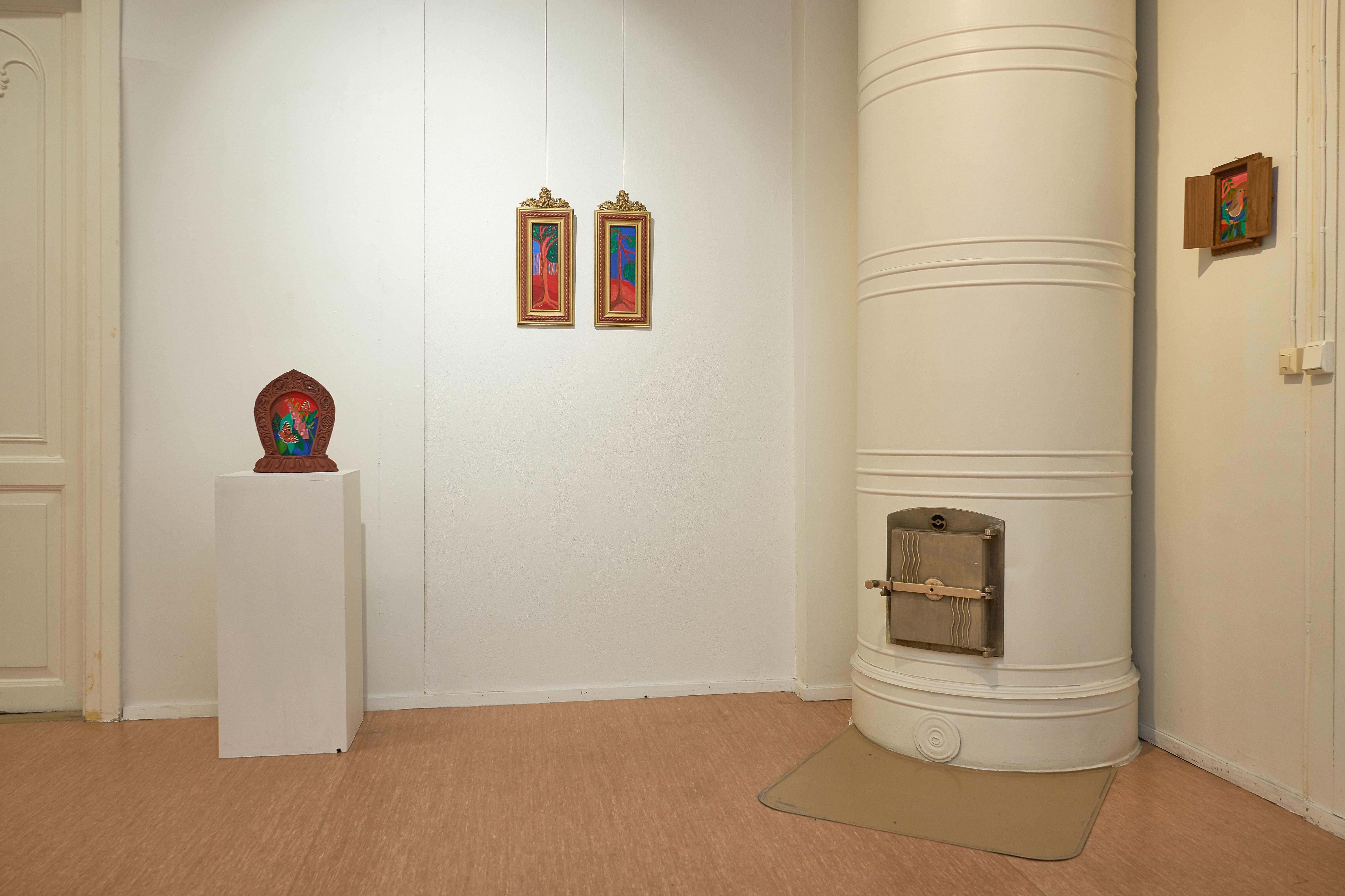 Hoivavietti, 2025, öljy puulle ja kankaalle, 60 x 44 x 9 cm Siunaus, 2025, öljy kankaalle, 170 x 240 cmLintukoto I & II, 2025, öljy puulle, 30 x 20 x 25 cm & 29 x 15 x 20 cmThank You for The Food Jesús & María, 2025, öljy levylle, 66 x 36 cmJää hyvästi Jämsänkoski, 2024, öljy kankaalle, 100 x 150 cm Escape on A Horse, 2024, öljy kankaalle, 150 x 160 cm Kappeli, 2023, öljy vanerille, 180 x 240 cmLepopaikka, 2023, öljy vanerille, 180 x 240 cm